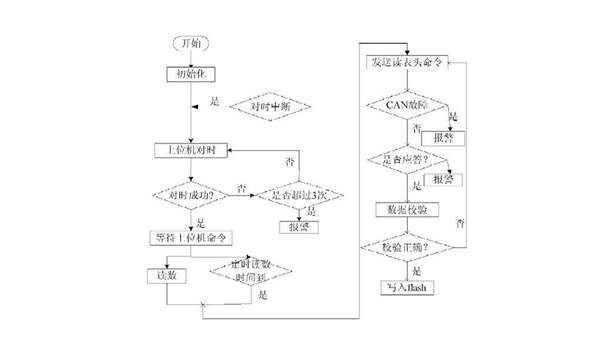 集中器將接收到的應答數據提取出電表讀數存儲在flash中。CAN數據收發工作流程如圖5所示。